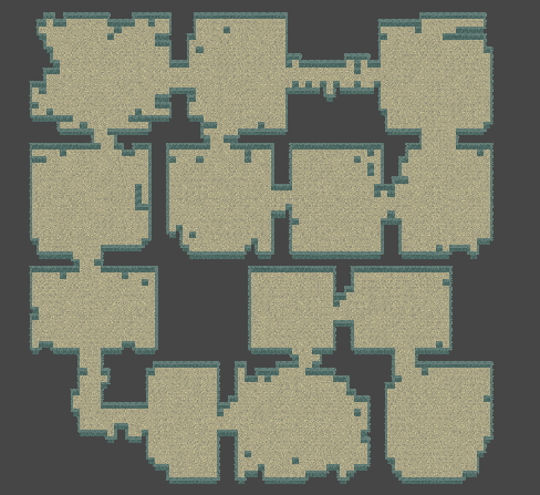 This process allows for a unique look to every new generation and very little repetition, which is good for replayability. However, the current state of this generator allowed for some rare cases of enemies being stuck or out of reach, and did not allow for pre-made special rooms to be implemented, for example for bosses, merchants, or chest rooms. Furthermore, the connexion between rooms was simple, and unreliable. It was improved upon in newer versions of the generator, available in the full article on Procedural Dungeons.